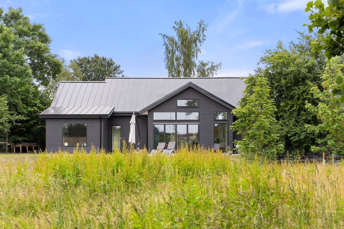 ロスキレ近郊にある魅力的な田舎の隠れ家。なだらかな丘とプライベートレイクの素晴らしい景色を楽しめます。この新しく改装された家は、素朴な魅力とモダンな快適さを兼ね備えています。テラスでコーヒーを楽しんだり、焚き火を囲んでくつろいだ夜を過ごしたり、鳥のさえずりを聞きながら穏やかな朝を過ごしたりできます。フルキッチン、ダイニングスペース、高速Wi-Fiを備えています。ロスキレ大聖堂、バイキング船博物館、市場に近い。デンマークの田舎でロマンチックな休暇や創造的な旅行を楽しむのに最適です。