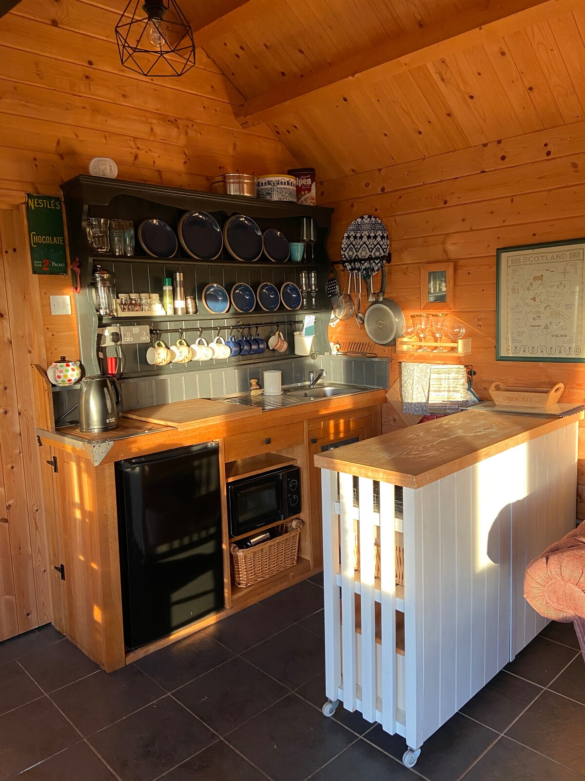 The Shed has been custom built, in the paddock, near my small barn conversion. It has a homely atmosphere, with vintage furnishings and up-cycled items. Where possible I’ve tried to be eco friendly. This is a quiet, tranquil place with beautiful views of the Scottish hills beyond the Solway Firth. It’s part of a small hamlet and my former family farm. Animals are often kept in the fields next to The Shed. You’ll experience stunning sunsets and starry skies.