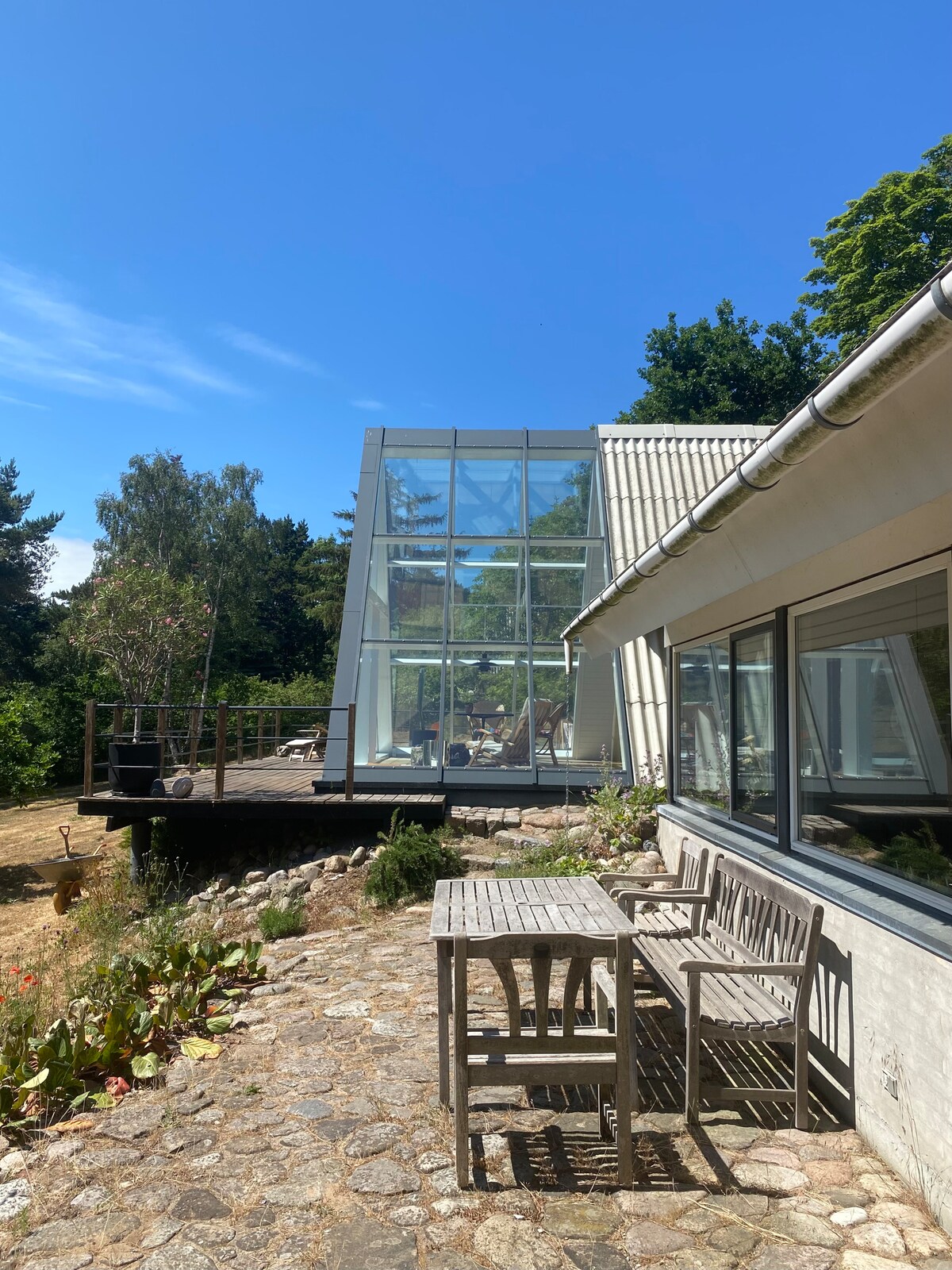 大きな木製テラス付きの快適な全面改装済みの別荘 家について: 70 m²の別館を含む 1室。ダブルベッド付きの別館(断熱・暖房付き) 1室。ダブルベッド 1バスルーム。床暖房、トイレ/シャワー付き 食器洗い機を含む新しいキッチン スマートテレビ付きリビングルーム(Netflix、Viaplay、HBO、Disney、DRtvにアクセスできます) インターネット バーベキュー付き55㎡の木製テラス ビーチまで5分 薪ストーブ(薪は無料)と電気ラジエーターで暖房 カルンドボルグまで10〜12分 家具は写真の通りです