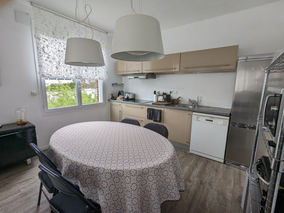ルーアンの高台にある住宅街にある私たちの家の延長線にある33平方メートルの2部屋のアパートで、すべての商店やバス停(Fast 1 Parc Andersen 停留所)に近いです。中庭に面しているのでとても静かです。アパートのすぐ前に駐車可能です。 リビング、キッチン、バスルームは1階にあり、寝室は屋根裏部屋です。 注意: お客様がご自身の寝具を持参されない限り、ソファーベッドをご利用の場合は15ユーロの追加料金が発生します。 私たちは英語を話します!