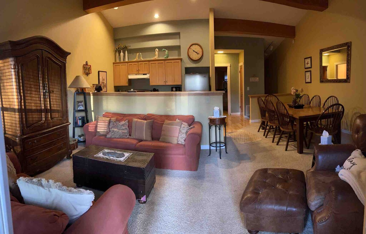 このタウンハウスには、1階に2台分のガレージがあり、キッチン、ハーフバス、リビング、ダイニングルームへの階段があり、2階には各自専用のバスルームを備えた寝室が2部屋あります。 寝室、リビングルーム、ダイニングルームの両方にデッキがあります!4つのデッキ!申し訳ありませんが、ペットの同伴とパーティーは禁止されています。最大4名様。カジノから2マイル。ヘブンリースキーロッジまで2~3マイル。