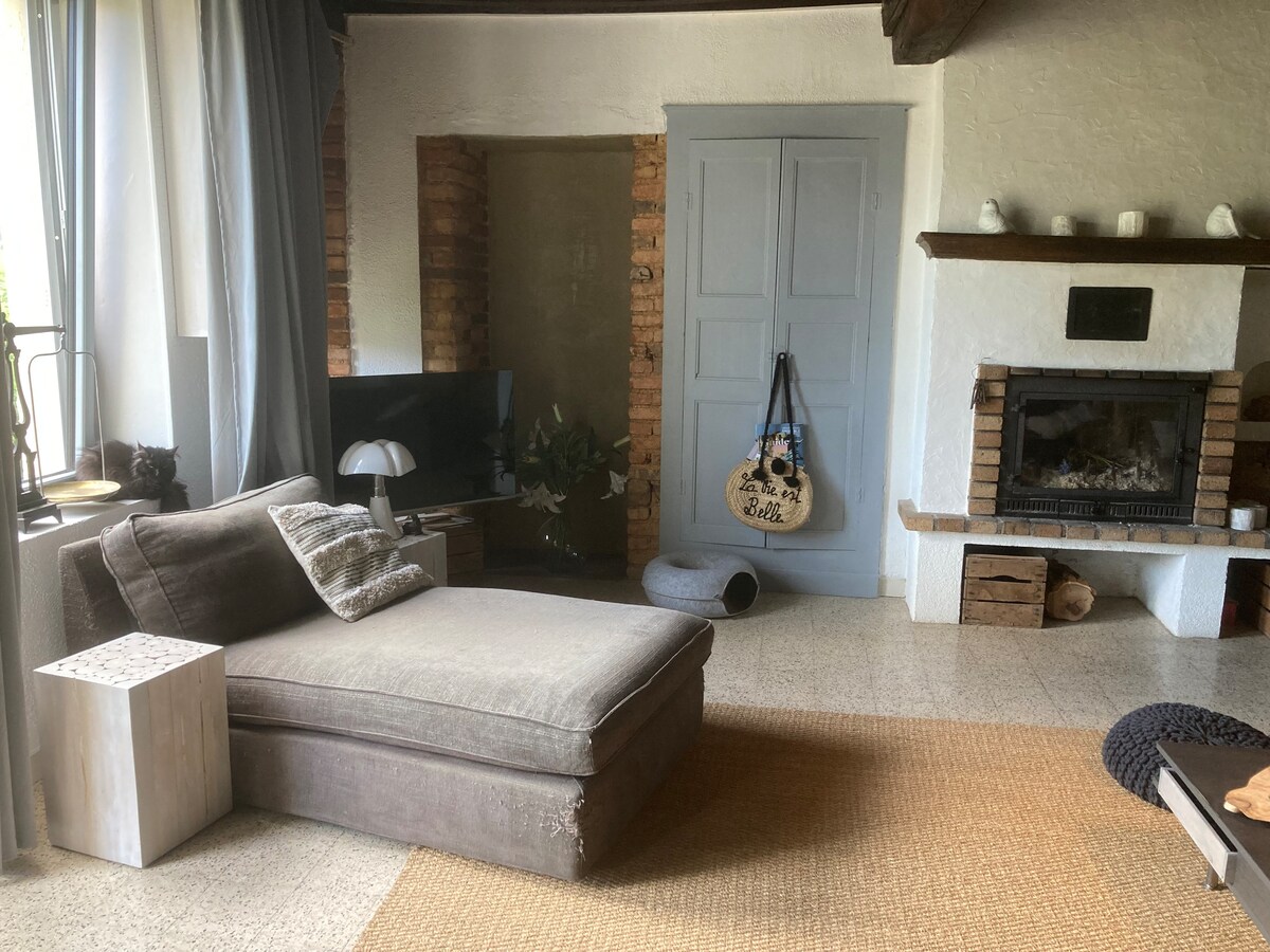 涼しく、快適で広々とした(90平方メートル)2階建ての家。 1階には広いキッチン、ラウンジ、テラスがあり、2階には素晴らしいダブルベッドルーム1部屋があります。 A6から16分の中世の村の山の上にある改装されたグランジュ。この平和な家は、アルプスやフランス南部での休暇に理想的な立ち寄り先です。 ご注意ください - 下の1階には専用の入り口があるワンルームアパートがあります - 個別に貸し出しています。