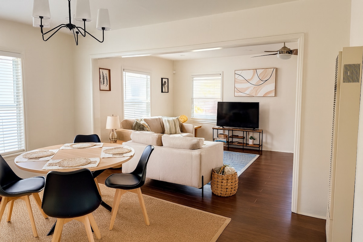 Light, welcoming, private 1 bdr apt just steps from the beach and close to Belmont Shore shops and restaurants. Fully renovated and equipped with new appliances, toaster oven, Keurig, washer/dryer, stocked kitchen, robes, beach chairs and towels, games, fast WiFi, and a 55” smart TV. With some of the best and uncrowded beaches around, it's perfect for work or play, short or long stays. Bonus: also ideal for training visits, athletes, coaches, or staff seeking LA28 Olympics housing.