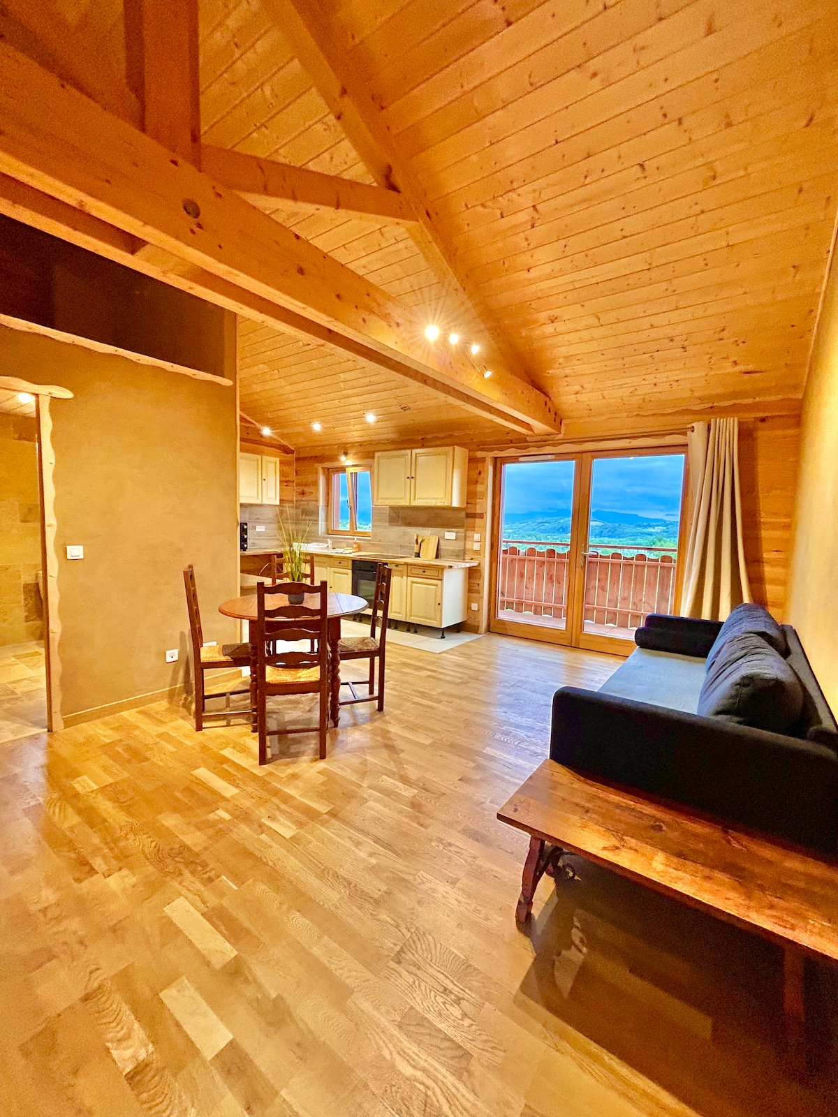 IDEALEMENT SITUE ds village classé "plus beaux villages de France" "village préféré des français " 2025 GRDE PIECE de vie 35m2 SDB indépendante avc WC 1 lit 140X190 + 1 canapé lit 1 lit pliant 90X190 hiver:POÊLE à granulés été: CLIMATISATION COIN CUISINE : micro ondes,four électrique,frigo- congél,2 plaques à induction,cafetière à filtre,senséo bouilloire, vaisselle café, thé, huile, vinaigre, sel, poivre, sucre à dispo,2 torchons TV, lecteur DVD, films WIFI code indiqué sur place