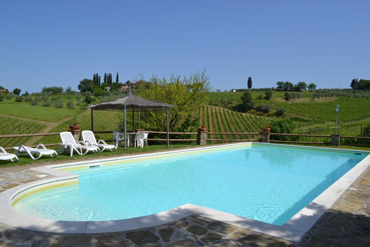 プーデーレ・ヴェルジャノーニは、プール付きで、キャンティに囲まれています。