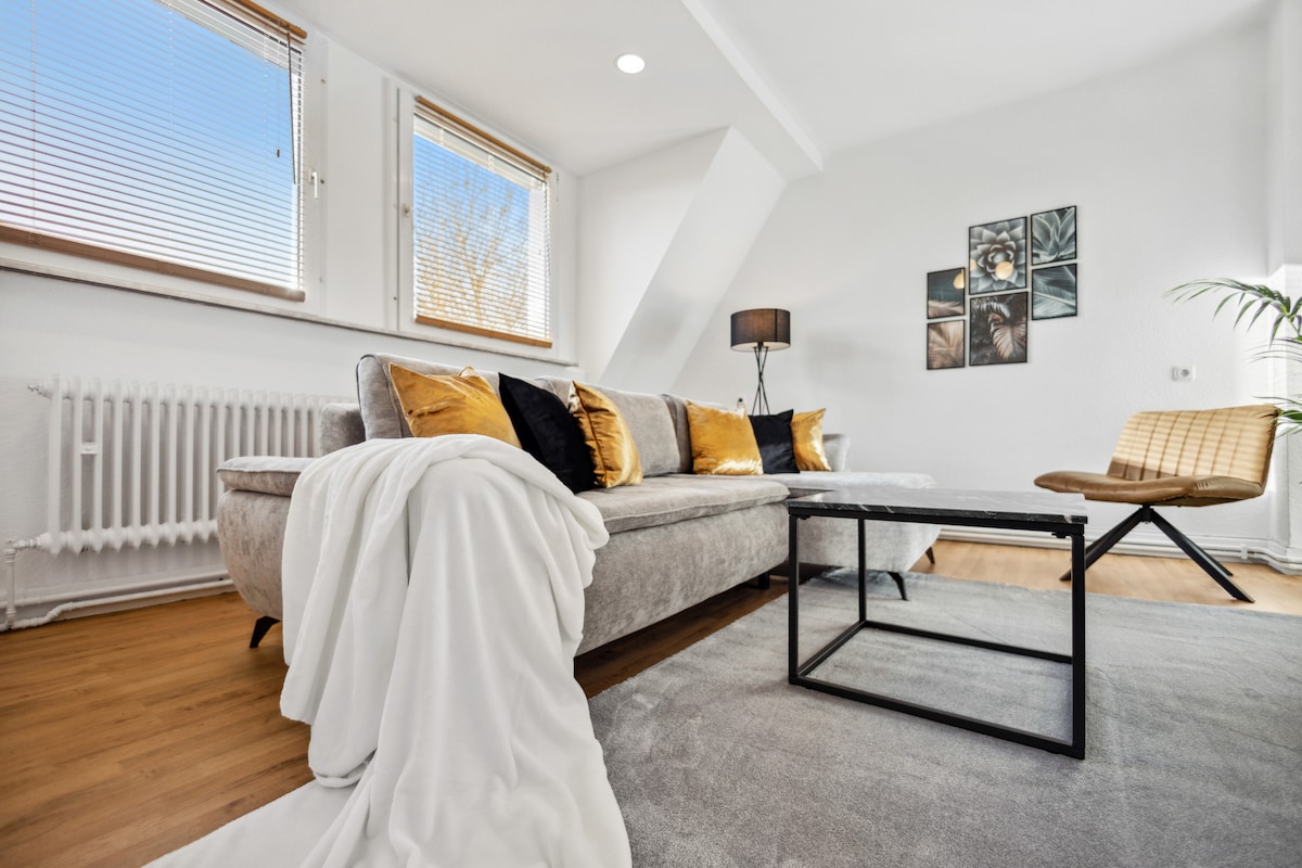 静かでありながら中心部に位置しています。ボークメンの南部に位置する新しく改装された屋上フロアのアパートは、広い視野のおかげで静かな時間を過ごすことができ、同時に探検旅行の出発点にもなり得ます。ボクームの南にあるルール地域の中心部に、完全に改装された2部屋の明るく静かなロフトアパートメントは、キッチンと浴室に日光が差し込むように設計されています。1.60 x 2.00のサイズのソファーベッドも追加できます。公共交通機関は徒歩で数分です。高速道路へのアクセスも非常に良好です。