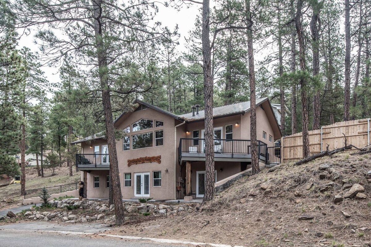 美しい2階建ての2ベッド2バスルームのキャビンは、シエラブランカ山の素晴らしい景色を一望でき、魅力的な近隣の松の木々の中に高く位置しています。 クイーンベッドルーム2室、フルキッチン、美しい赤い効率の良い暖炉、冷暖房、山に面した書斎エリアの大きな窓。 Wi-Fi、DVDプレーヤーとRoku付きテレビが2階にあり、小型Roku TVが1階にあります。 ** 2024年6月の火災以降、キャビンは無傷です。「2024年6月以降の新しい風景」というタイトルの追加された最新の写真をご覧ください**