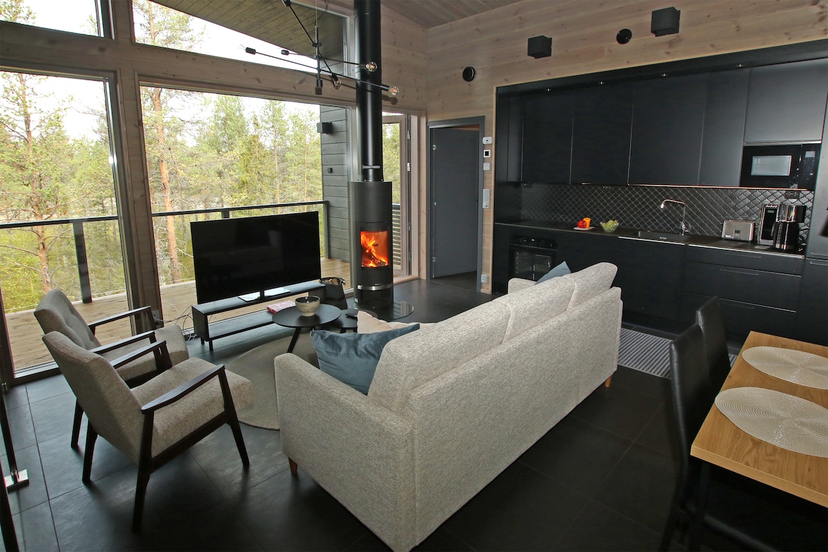 2024年12月に完成した、ルカトゥントゥリのサービスに近い、高品質でスタイリッシュなペアハウス。ルカトゥントゥリのスキーリフトやサービスから1.8kmの冬の自然景観と静けさをお楽しみください。ヴォッセリニャルヴィのスキーコースまで徒歩数分。コテージは、例えば子供連れの家族に最適です。ベビーチェアとベビーベッドがあります。コテージには電気自動車の充電設備もあります。テレワークに適した環境で、27インチのモニターと5Gインターネット接続をご利用いただけます。