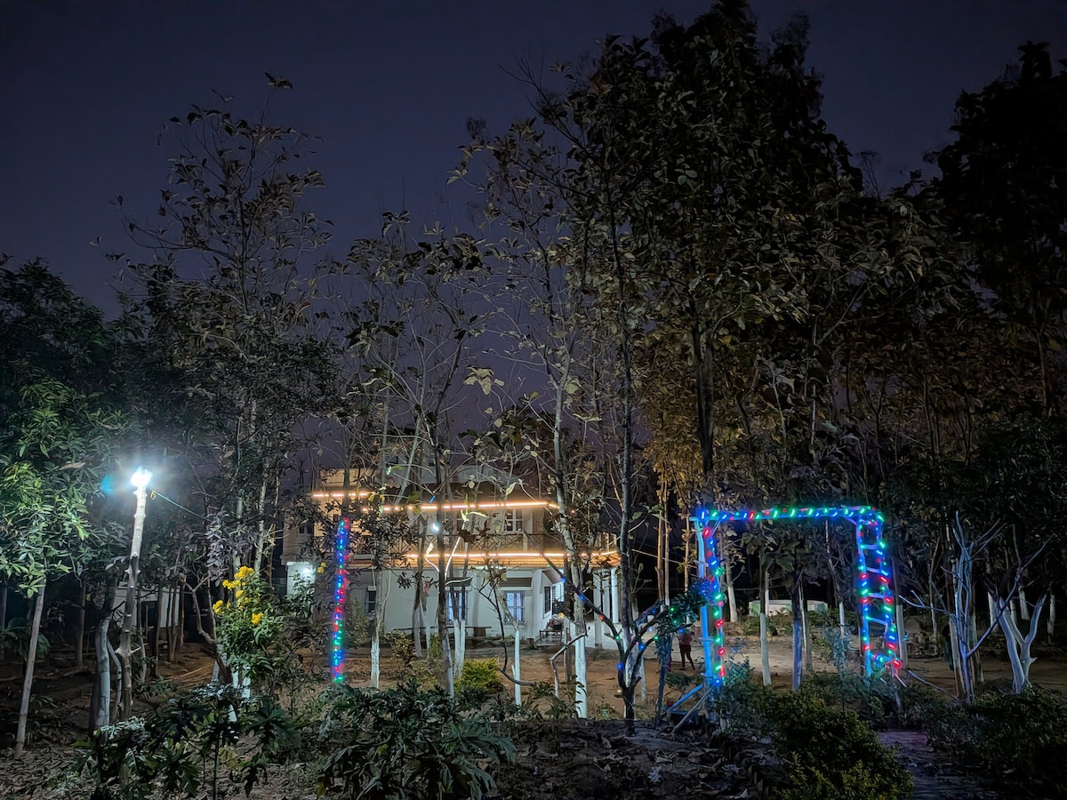 Scenic 2-Acre Farmhouse near Ranchi | 50 mins drive Relax at a peaceful private farmhouse stay near Ranchi🌿 🏡 G+1 bungalow with 2 living halls, 2 bedrooms with 2 king-size beds, 4 single beds,2 washrooms & a fully equipped kitchen (ext mattress avlble). 🌌 Terrace for stargazing | Large deck balcony 🔥 Bonfire & BBQ @nominal charge. 🏸 Games: Badminton, Cricket, Carrom, Ludo, Chess & more 📸 Perfect for families, friends, parties & photoshoot 🚗 Ample parking | Caretaker on-site | Wifi