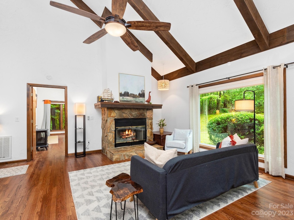 観光地の近くにあるブラックマウンテンにある本格的なログハウス。 チムニーロック(15分)とブラックマウンテンのダウンタウン(25分)に近い、平穏で静かなロケーションです。*道路は地元の人々が利用できます。 GPSは遠回りするかもしれません。 ジャグジーから夕日を眺めたり、木の天蓋の下で食事をしたり、暖炉のそばでくつろいだり、ポーチのブランコでコーヒーを楽しんだりできます。 DVDを選んで楽しんだり、Bluetoothパーティースピーカーで音楽を聴いたり、ゲームをプレイしたりできます。 ペット歓迎
