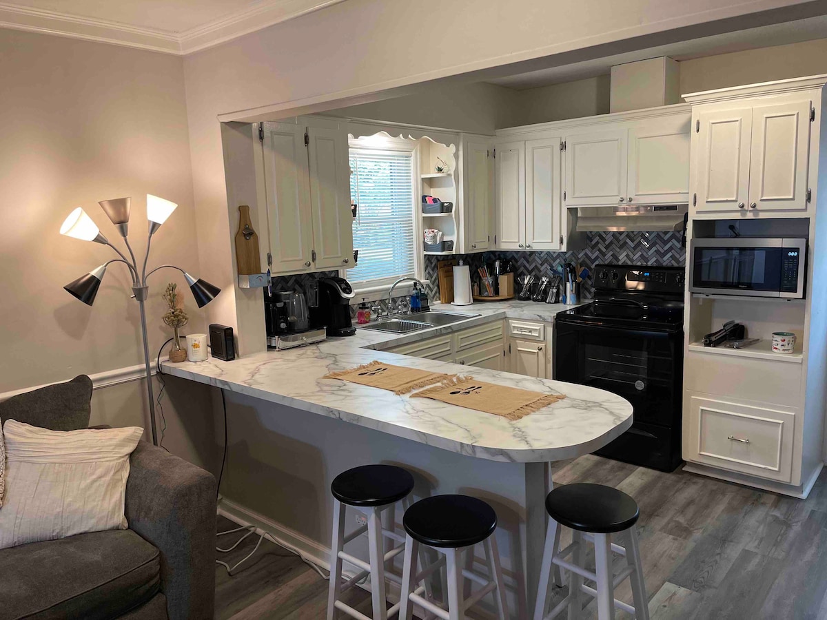 Brookwood Cottageへようこそ。フォート・ベニングからわずか数分の場所にある、心のこもったデザインの居心地のよい隠れ家です。 軍人のご家族、卒業祝いの訪問、一時的な出張滞在、またはのんびりとした休暇に最適なこの寝室2室・バスルーム2室の宿泊施設は、快適さ、利便性、魅力が理想的な形で融合しています。 中に入ると、くつろぎを促すように設計された、温かく魅力的な空間が広がります。快適な寝室、設備の整ったキッチン、居心地のよいリビングエリアが備わっており、自宅にいるかのようにくつろげるために必要なものはすべて揃っています。