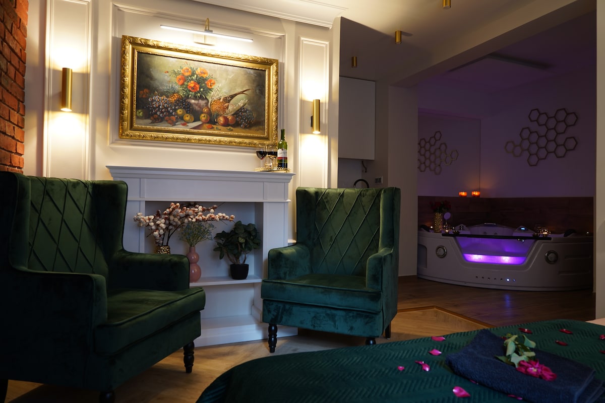 ジャグジー、サウナ、専用庭園を備えたユニークなアパートで、リラックスするのに最適な場所です! 専用ジャグジー、サウナ、居心地の良い庭などが特徴で、モーニングコーヒーや夜のリラックスタイムに最適です。無料の地下駐車場もご利用いただけます。ロマンティックな週末や自然に囲まれた豪華な休暇に最適な選択肢です。