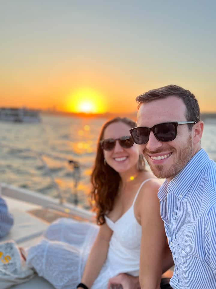 夕暮れどきのVIPプライベート豪華ヨットクルーズ