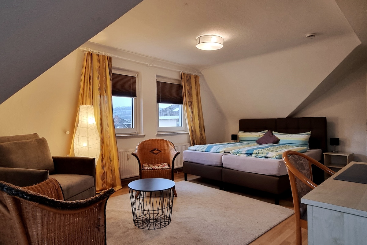 かつての農場の2階にある100平方メートル以上の居住スペースでリラックスしてください。 アパートは美しいウェーゼル山脈の真ん中にあるオッテンスタイン高原の主要な町にあります! よく標識されたハイキングコースで高原の地域を探索してください。美しいヴェーゼルサイクリングロードも近くにあります。 近くのスパの町バート・ピルモントやラット捕りの町ハメルンは一見の価値があります。 ボーデンヴェルダー(嘘つき男爵ムンヒューゼン)への旅行をお勧めします。