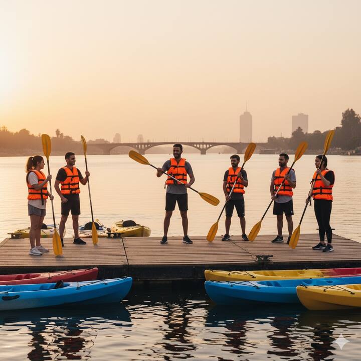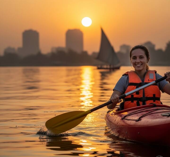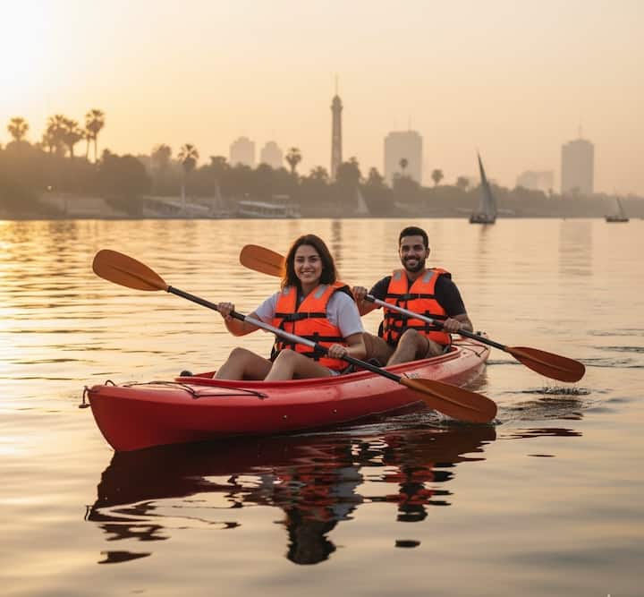 経験豊かな地元のコーチとナイル川でカヤック体験