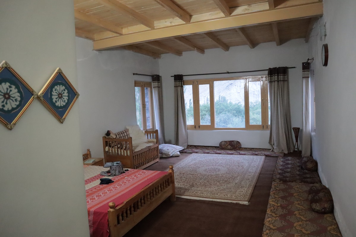 ユニークな立地とオーガニックフードを提供する穏やかな環境のゲストハウスです。ゲストには最高のサービスを提供しています。屋外でリラックスできる緑豊かな果樹園があります。 ブニゾムやテリッチミールなどの巨大な山頂の眺めと川の景色。ゲストは屋外ダイニングと無料Wi-Fiを利用でき、滞在をより楽しくすることができます。家族や友人と一緒に滞在できるゲストハウスで、パキスタン北部の村の生活と自然の美しさを体験できます。 一度訪れてみてください
