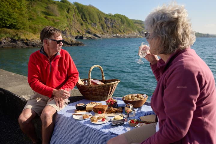 地元の人と一緒にトーヘッドの崖の上をハイキング