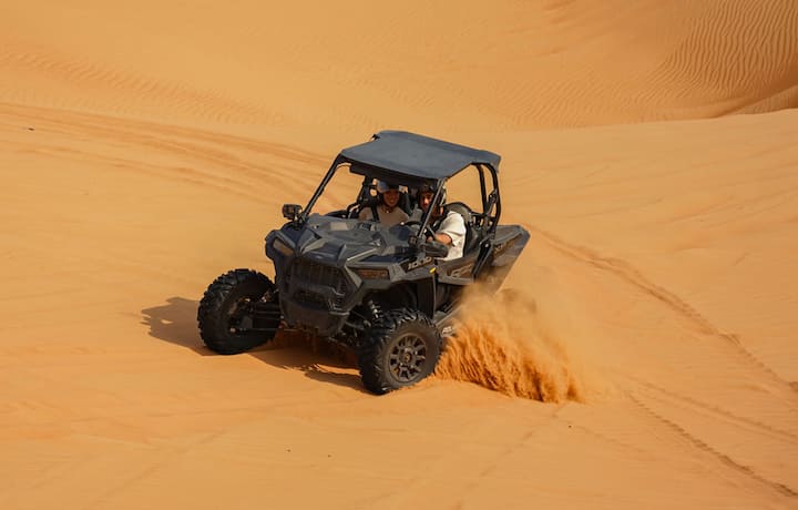 ドバイで四輪バギーのデューンバッシング、サンドボード、ディナー