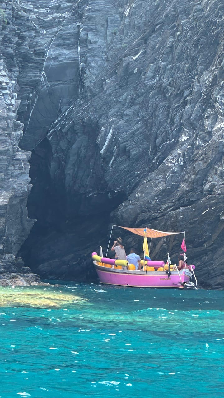 ジェニーとピンクボートで海賊の海岸と洞窟を訪れよう