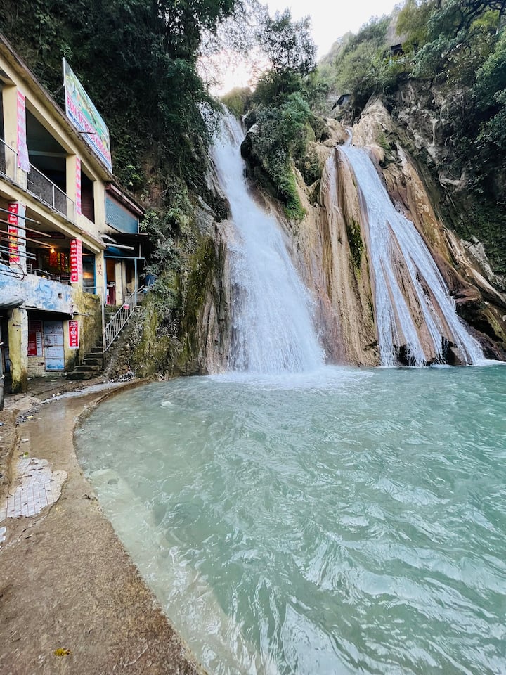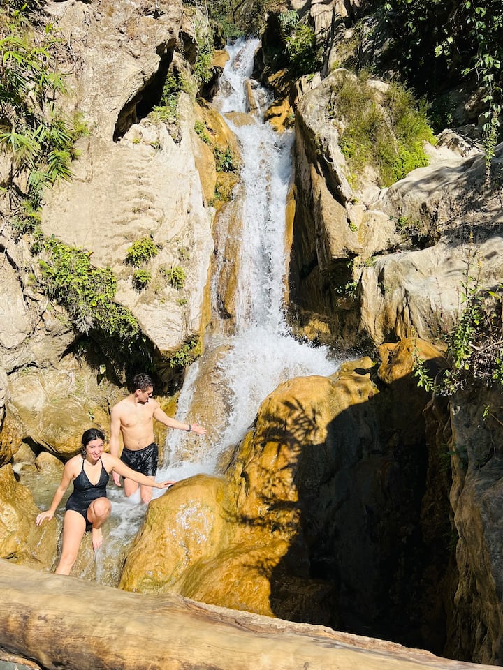 滝までハイキングして天然の泉につかろう