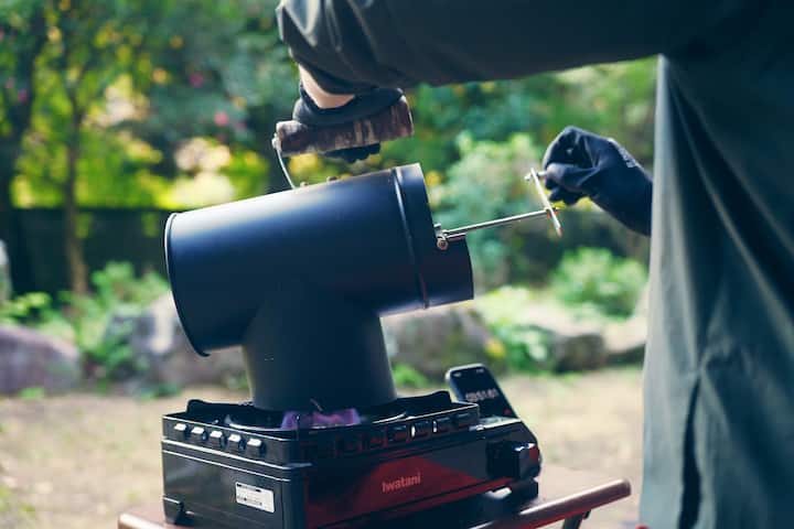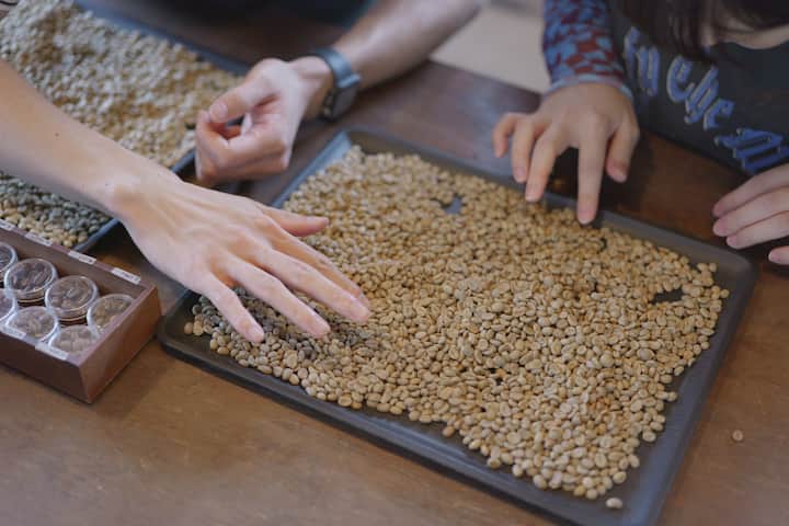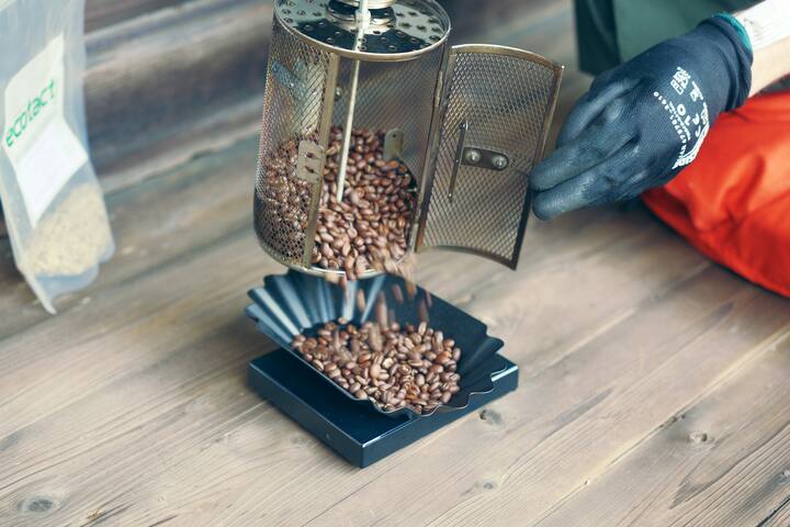 伝統的な古民家の縁側で珈琲焙煎ワークショップ