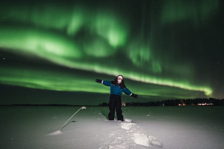 ラップランドでアイスフィッシング体験(バーベキュー付き)