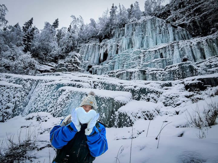 ラップランドでアイスフィッシング体験(バーベキュー付き)