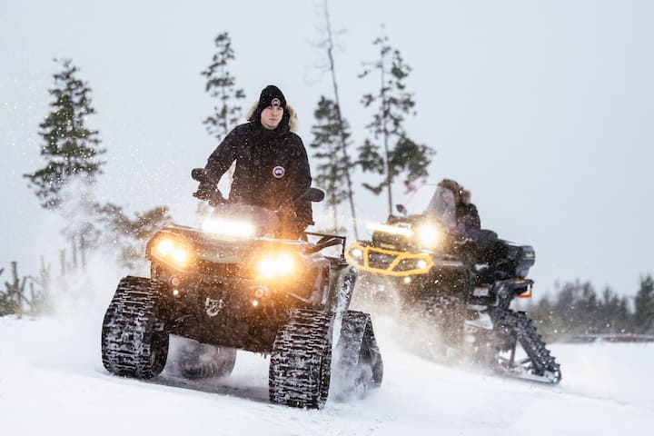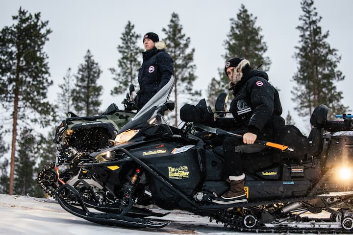 スノーモービルで北極のトレイルを進み、ガラスのイグルーでランチを楽しもう