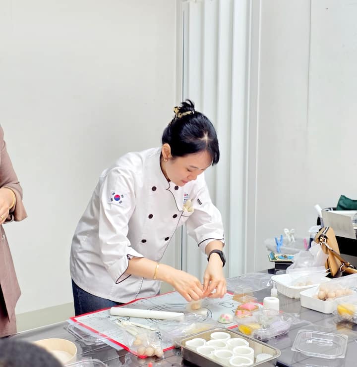 友達や家族と一緒に韓国の伝統的なお餅作り体験