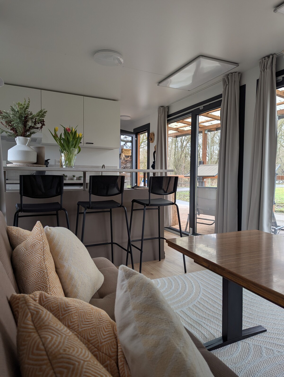 上階の約70m²のスペースで最大4名様までお楽しみいただけます。快適なダブルベッドを備えた2つの寝室、印象的な5.20mの天井高、フルダ、フラウエンベルク、ローンのパノラマビューを望むガラス張りの正面。設備の整ったキッチン、65インチのスマートテレビを備えた快適なリビングエリア、レインシャワー付きの豪華なバスルームが快適さを提供します。屋根付きバルコニーまたはサウナハウスでリラックスしてください。太陽光発電、駐車スペース、電動自転車充電ステーション付き。