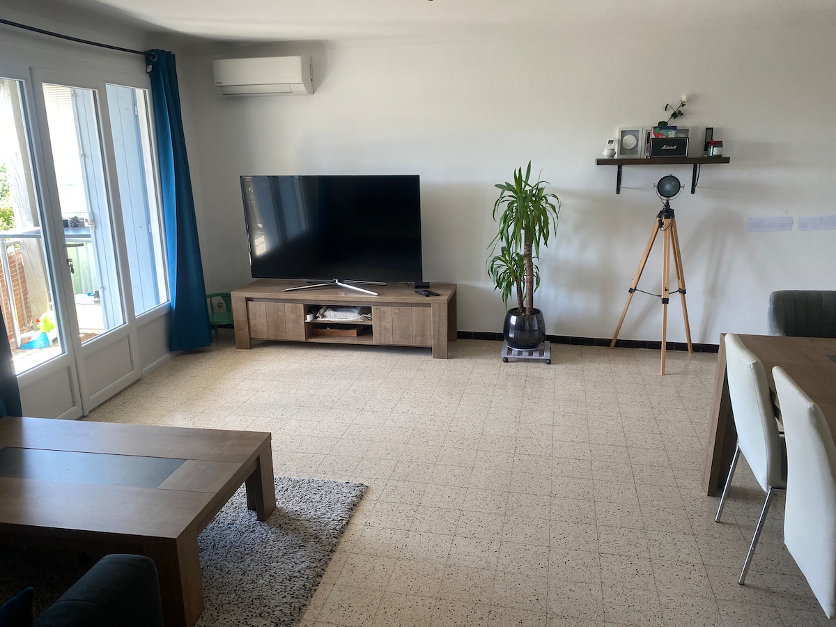 ドーム・プロヴァンス地方のグリニャンの隣、ブドウ畑とラベンダーの間にある私たちの家は、この敷地内で唯一の宿泊施設です。2階にあり、大人4名様用で、所有者のマスに隣接しています。48平方メートルのリビングルーム、設備の整ったオープンキッチン、127センチのテレビ、エアコン。イタリアンシャワー、ダブル洗面台、独立したトイレ、エアコンを備えた35平方メートルのマスターベッドルーム。30平方メートルの中二階。2つのベッドは160 X 200です。ウェーバーバーベキュー付きの専用テラス。
