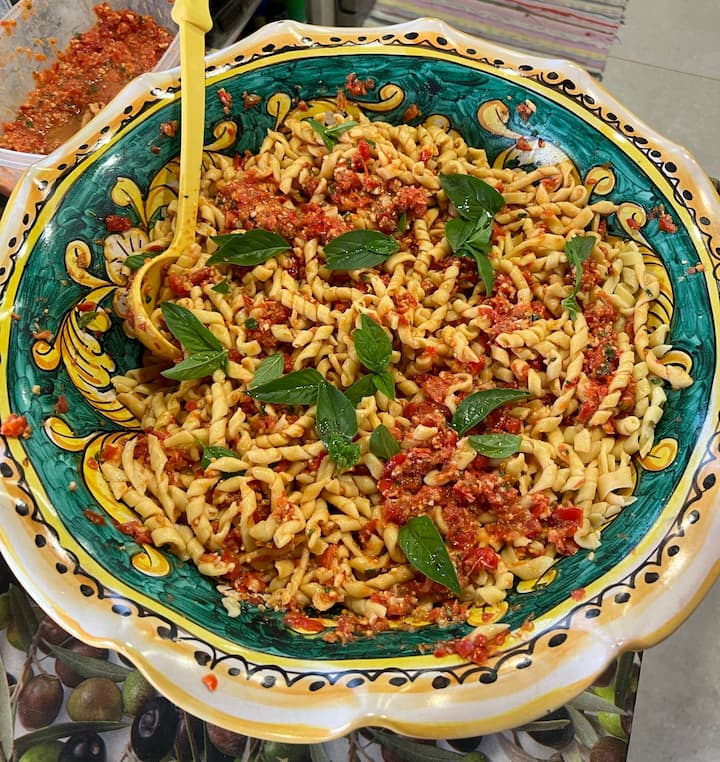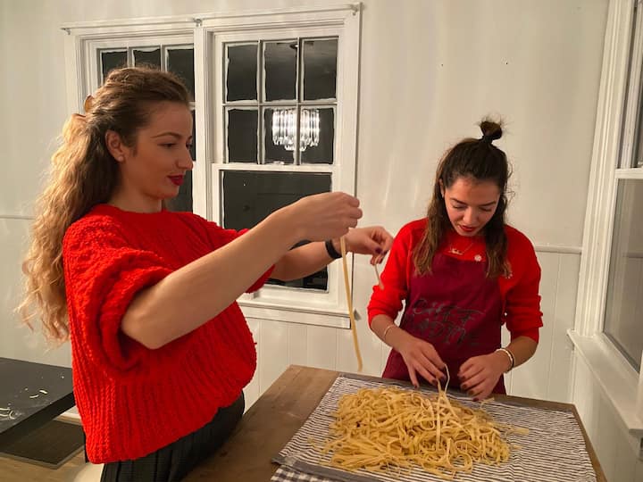ホストのママと一緒にシチリアのブジアーテパスタをつくろう