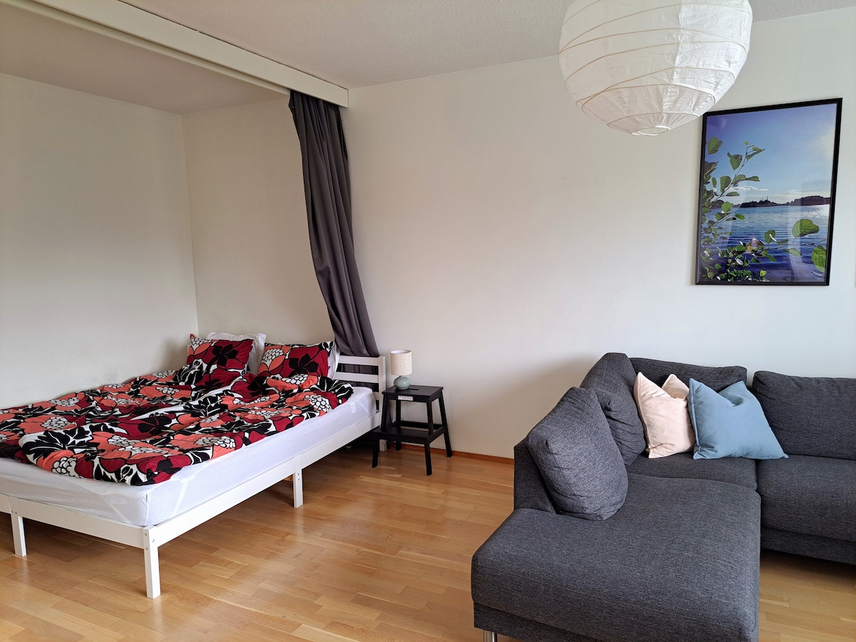 この小さくてコンパクトなアパートは、良いサービス、美しいトレッキングパス、そして素晴らしいスイミングができる湖の近くにあります。冬でも、サウナのある湖で冷たい水に浸かることができます。タンペレ市内までトラムで20分で行けます。 キッチンはありませんが、アパートにはコーヒー・紅茶を作ったり、朝食を準備したり、食べ物を温めたりするための設備が整っています。 7階の静かなロケーションです。リモートワークや勉強に最適です。