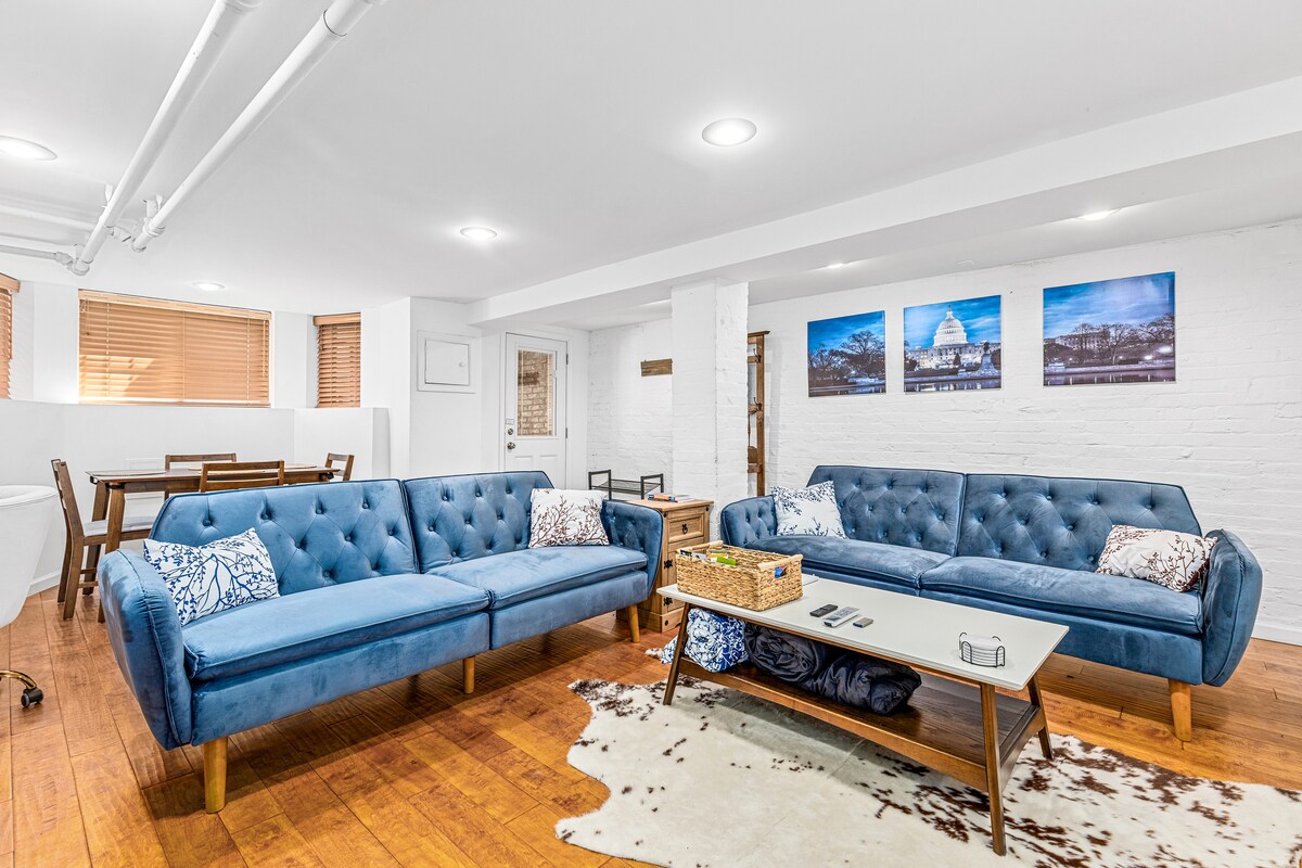 ワシントンDCの改装されたばかりの地下アパートでリトリートをお楽しみください。無料の路上駐車場があり、繁華街の喧騒へのアクセスも便利です!アメニティには、セルフチェックイン/チェックアウトが可能なスマートロック/アラーム、Duxianaクイーンベッドを備えた広々とした寝室、快適なソファとスマートテレビを備えたリビングルーム、モダンな新しく改装されたバスルーム、コーヒーメーカー、ケトル、冷蔵庫、コンロ/オーブン、電子レンジを備えたフルキッチン、洗濯機/乾燥機が含まれます。
