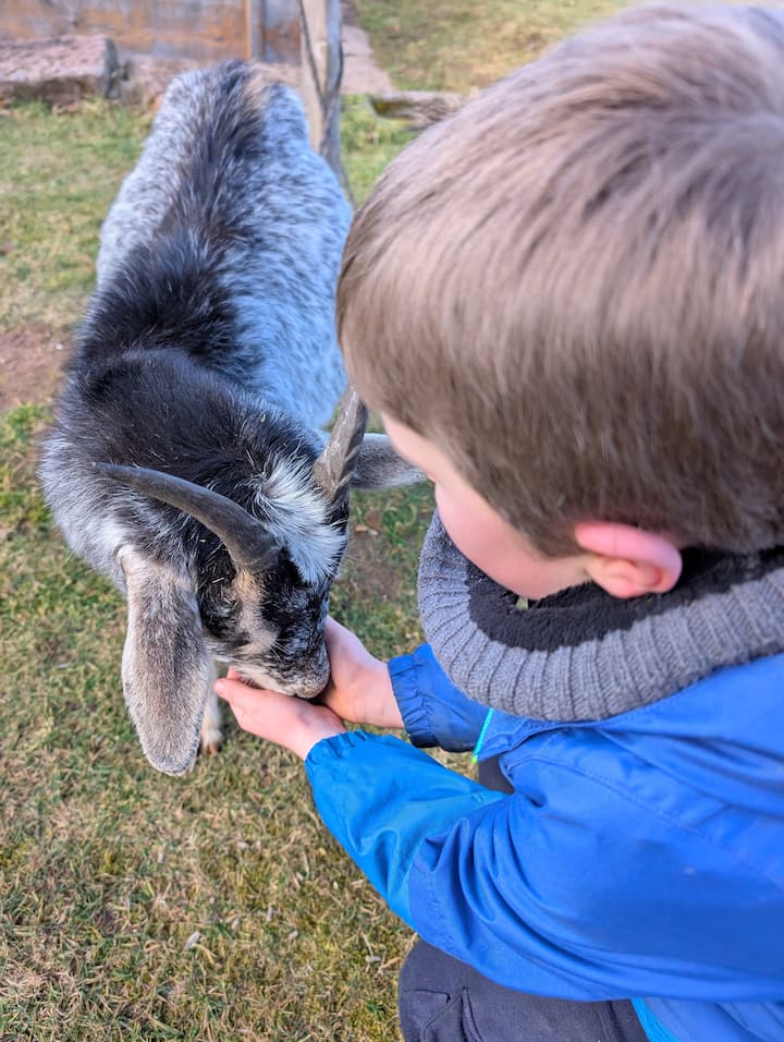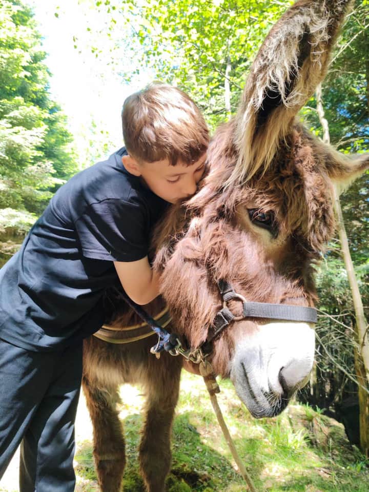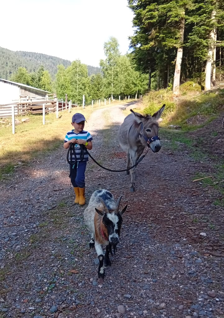 ロバとヤギの珍しい散歩