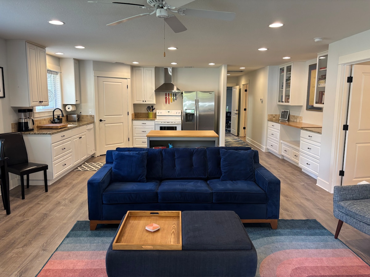 専用玄関とバスルームを備えた独立したワンルームで、清潔、快適、家具が完備され、モダンで明るく、Starlink Wi-Fiを備えています。 最先端の14インチゲル-メモリーフォームマットレス、イケアの2インチのトッパー、エレガントな枕と心地よい毛布。 1エーカーの静かな敷地内で、すべてを忘れてリラックスしにお越しください。 この空間は、私たちの大切な人たちを念頭に置いて設計されています。だから、誰もが最高の体験をすることができます。 モダンなフローリング、塗装、バスルームの備品、設備が整った簡易キッチン。