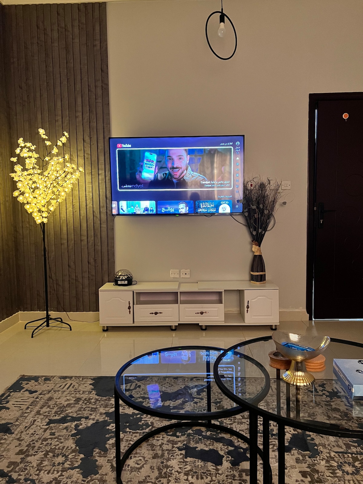 ヤンブ工業都市にある、エレガントなセルフチェックインアパートメント。寝室とリビングルーム、コーナーソファ、特別なインテリア。静かな立地とパーキングスペースが特徴です。 利用可能: キッチンと冷蔵庫 コーナーソファ、コーヒーテーブル、大型テレビ クイーンベッド