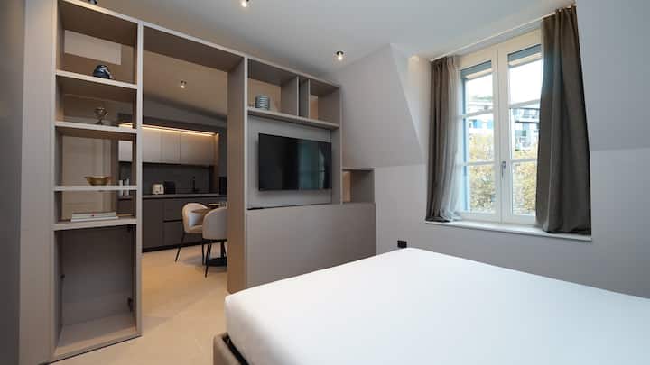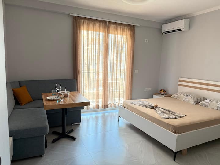 ヴォワロンの中心部にあるエアコン付きの新築ワンルーム