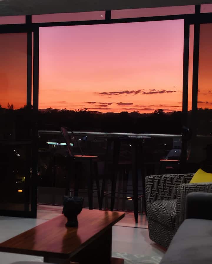 火山が見える贅沢なロフト、ソナロサ、ジム、バルコニー