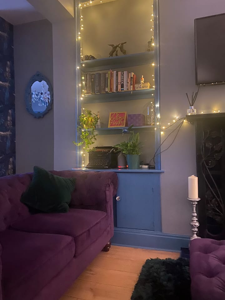 エドワード朝様式のテラスの暖かく居心地の良いダブルベッドルーム。