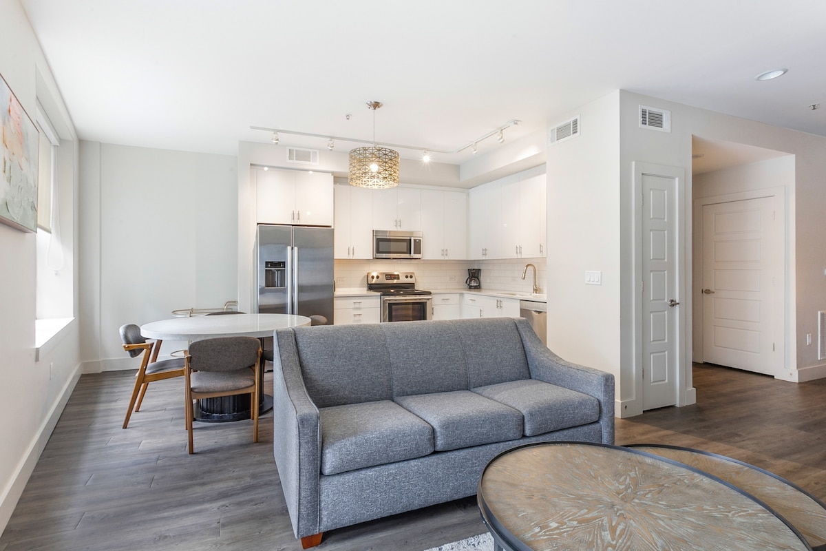 The pied-a-terre has a full kitchen, 1 bedroom and bath. The combined living and dining room has large windows allowing for abundant sunlight. Local artwork is featured and the place is very comfortable. TV's are included in the living room and bedroom. The kitchen offers plenty of pots, pans, dishes, Keurig coffee maker, etc, as well as local cookbooks. Pets are allowed with a fee, which is displayed when you enter them as pet guests.