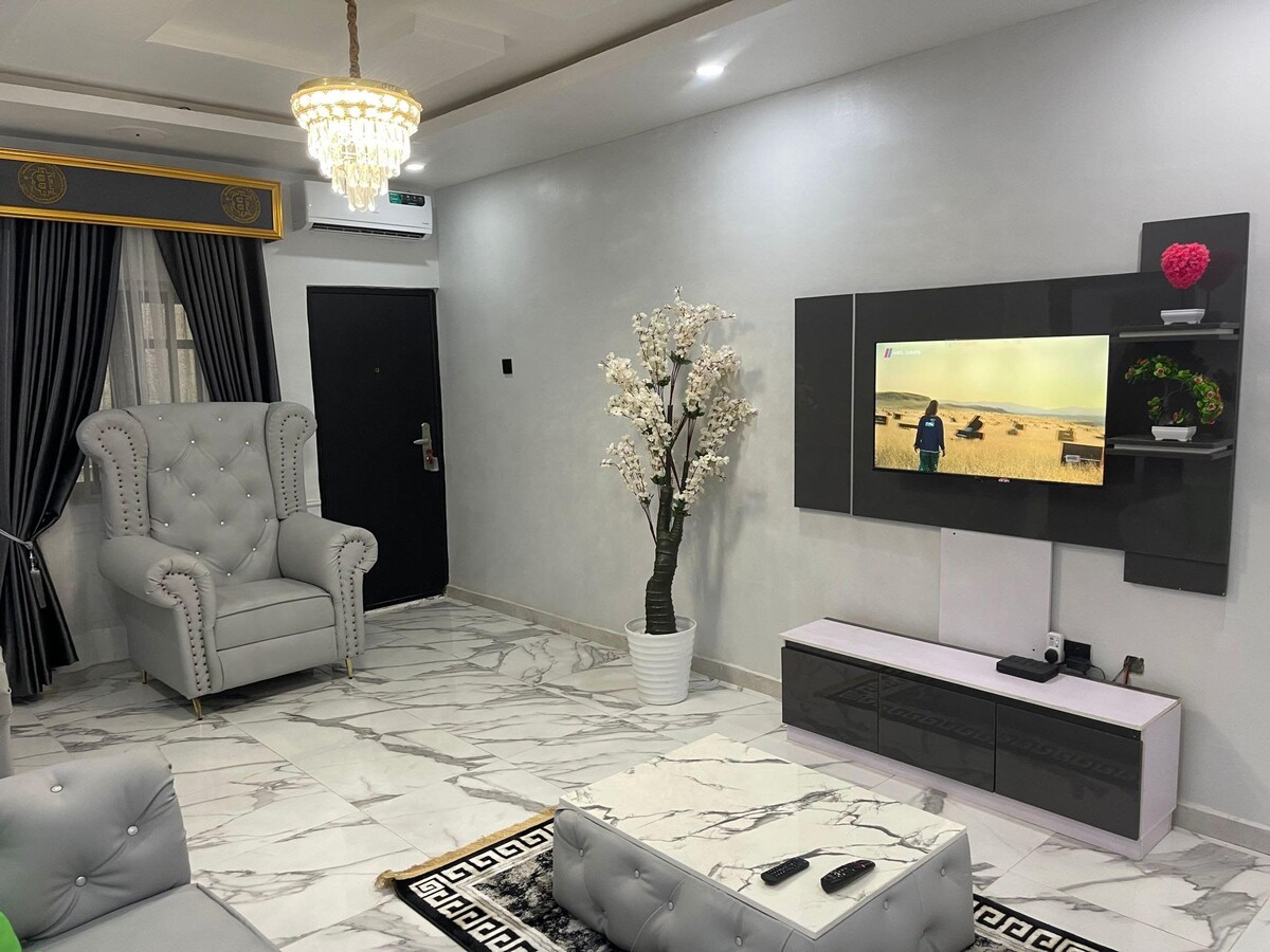 こちらの落ち着いた宿泊先で、ご家族一緒におくつろぎください。 敷地内にゲート、警備員、カメラがある安全なエステートのロケーション。Makun GRAエリア。 ソーラーパワーハウス。NEPA電力も利用可能で、発電機も利用可能です。 安全な敷地内にジム、プール、子供用の遊び場があります。 洗濯乾燥機をご利用いただけます。 高品質の英国製のエアーベッドを2台追加でご用意しております。 エアコンが利用可能です。 駐車スペース完備。 DSTVとWi-Fiをご利用いただけます。