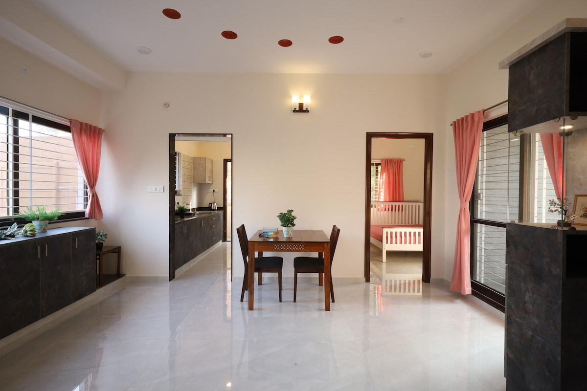 TRUFFSチョコラティエのすぐそばにある、自宅から離れた美しい家。 新しい国際空港道路から1 kmの内装。 バンガロールで最も素晴らしい住宅レイアウト( BGS )の1つに位置しています。広い駐車スペースとプライバシーが守られた独立した家の2階にあります。 市内と空港へ向かうタクシーへのアクセスがとても良い。 問い合わせや支援については、オンコールアテンダント にお問い合わせください。この家は、安全、プライバシー、バスチュを考慮して新築されたエリアです。