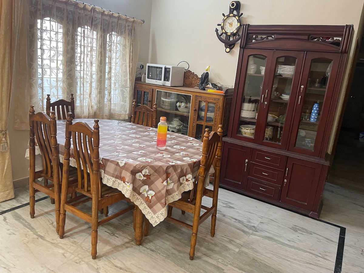If you’re looking for a peaceful, clean, no-fuss space to stay in around East Hyderabad, this might just be it: What You Get: 🛏️ 2 private bedrooms — 3 clean beds (1 x king + 2 x single) 📺 Comfy living room with sofa + TV (Prime & Netflix on us :D) 🍳 Full kitchen: stove, fridge, utensils (yes, you can cook) 📶 Fast WiFi— great for work calls/YouTube binging 🚿 24/7 water, geyser, proper ventilation 💪🏻Workout station: Treadmill + dumbbells etc 🚪 Private entrance + 🅿️ dedicated parking
