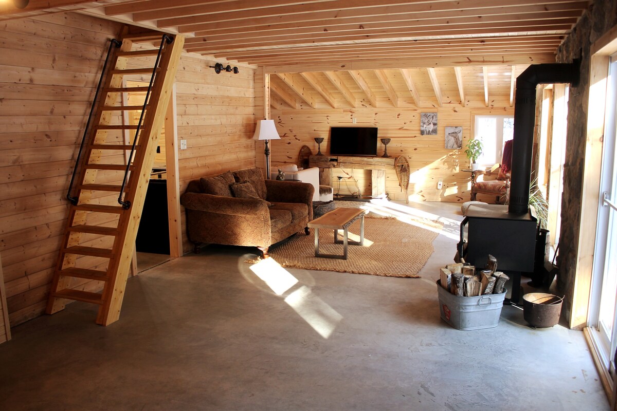 ヒューロン湖のほとりに位置する美しいシャレー。ケベックから1時間15分、モントリオールから2時間、トワー・リヴィエールから1時間です。シャレーは、日常生活から離れやすい静かな場所にあります。 ナタカムは、ラック・オ・サンブルの村とその美しいビーチ(ケベック州で最も美しいビーチの1つ)から5分以内の自然の中にあり、非常に良いロケーションにあります。シャレーのすぐ前でハイキング、サイクリング、ゴルフ、水泳もできます。マウンテンバイクとスノーモービルへようこそ。