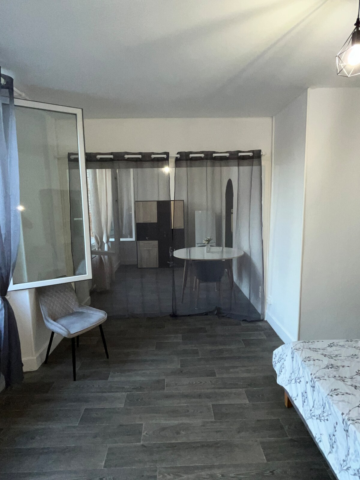 Charmant studio de 42 m2 entièrement refait à neuf, pour 2 personnes, situé en plein centre ville d’Issoudun. Le logement est proche de l’église Saint-Cyr ainsi que de la Tour Blanche. Vous trouverez une cour extérieure de 8m2 vous permettant de profiter des journées ensoleillées notamment le jacuzzi à votre disposition ainsi qu’une plancha et barbecue. Plusieurs commerces se situent à proximité. Veuillez noter que le jacuzzi n’est pas utilisable de novembre à mars.
