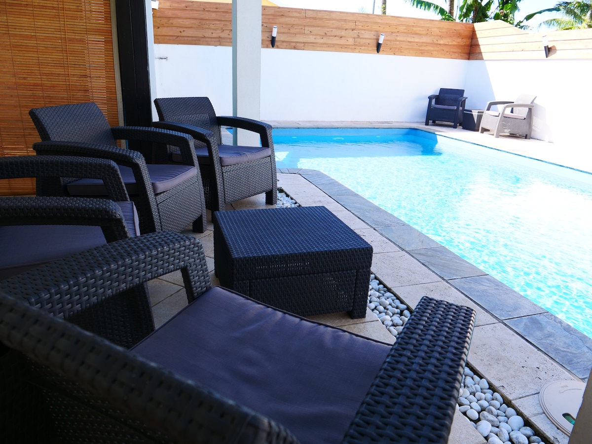 洗練された装飾の高級ワンルーム、快適な設備、プール付きヴィラの庭の1階に位置しています。美しい庭園、サトウキビ畑、海の景色を望む大きなテラスには、ダイニングエリアとラウンジチェアが備わっています。 独立したアクセス。空港から7分の場所に位置し、近くにはいくつかの観光スポットがあります(ラ・ヴァニレライ、ラファール、ブワ・ルージュの砂糖工場、ナイアガラの滝、多くのプールなど)。 北部、サラジーサーカス、東海岸を訪れるのに理想的なロケーションです。