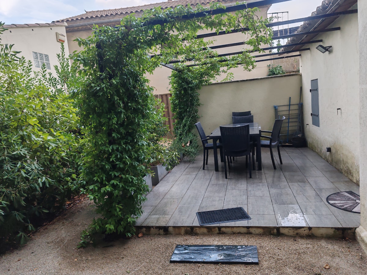 こんにちは。家具付きのエアコン付きアパートをご提供します。160x200のベッド+ソファベッド+エキストラベッド+ベビーベッド、中庭付きの1階にあり、全てが1階にあり、1〜5名様用で、中心部のレムーラン通りにあり、周辺の観光スポットの真ん中にあり、オランジュ、ニーム、ユゼス、アヴィニョンなどの町から17分、そしてもちろんポン・デュ・ガールから4分です。 川まで徒歩200メートル 高速道路出口から3分、途中の村に立ち寄るのに最適
