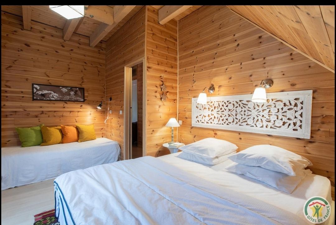 3つ星の家具付き観光用別荘(6名様用ですが、最大8名様まで宿泊可能)。広葉樹でできており、山の雰囲気があります。ステ・ミシェル・ド・シャイヨのスキー場に位置し、南向きで、テラスからは谷の景色が見渡せます。敷地面積約1000平方メートル、専用駐車場、スキーロッカル。 8名様用の完全な宿泊施設:寝室3室、山岳地帯の1コーナー、浴室2室(うち1室はトイレ付き)、独立したトイレ1室、調理器具付きキッチン、スキー場のゲレンデを見渡す大きな窓のある明るいリビング、ソファ、テレビ