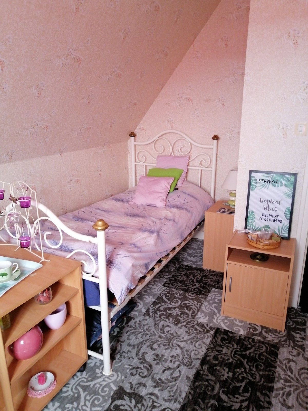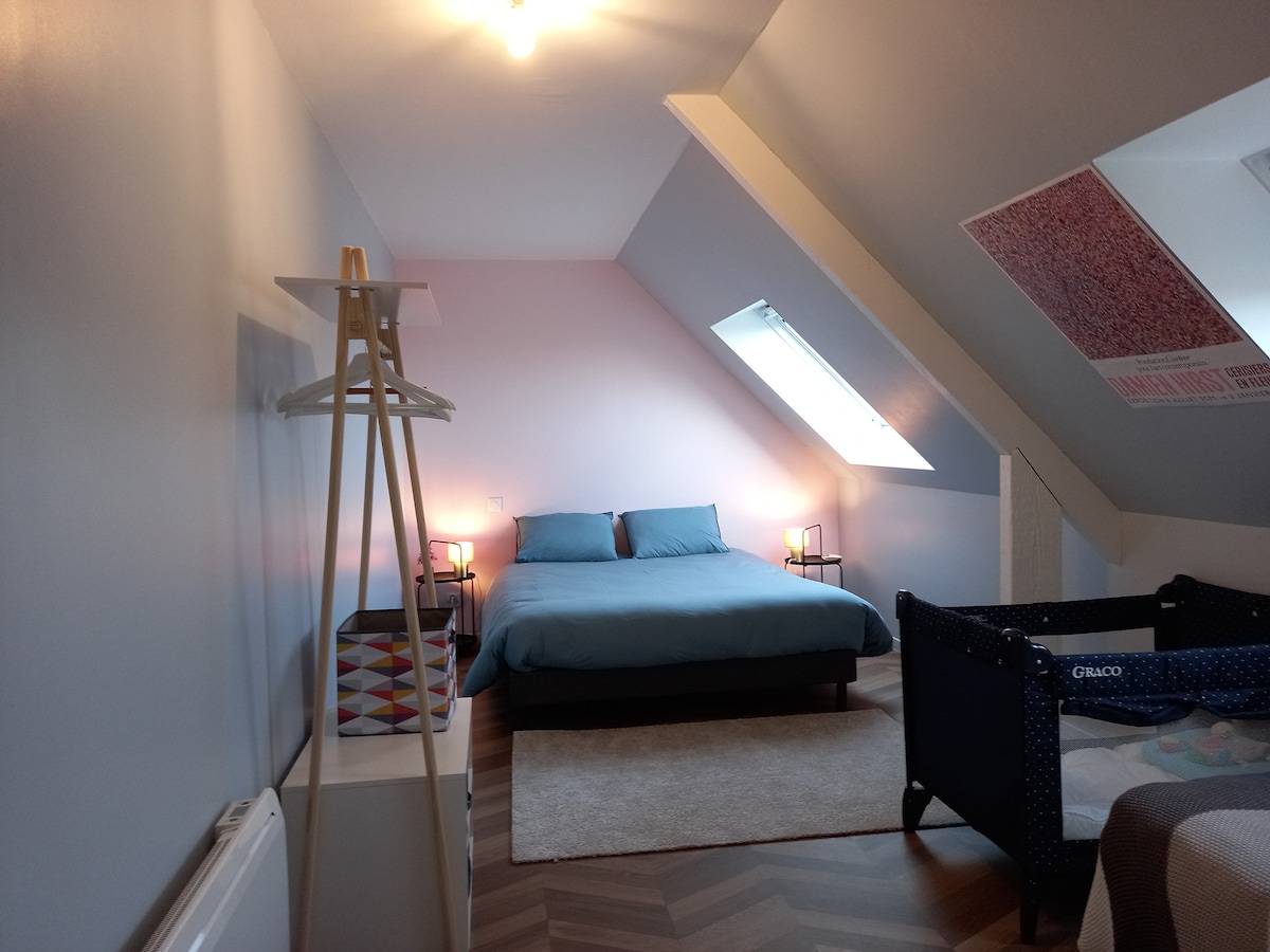 このゲストルームは、ブルターニュの北海岸を旅行するのに理想的な場所にあります。海や商店街から2 km、静かな通りにあります。 2部屋のB&B専用の2階にあり、ダブルベッド1台、ウェルカムトレイ付きのケトル、Wi-Fiアクセスが含まれています。 2つの部屋で共有されるバスルーム、トイレ、読書コーナー、バルコニー。 朝食は、天気に応じてダイニングルームまたはテラスで提供されます。 敷地内に無料駐車場あり。